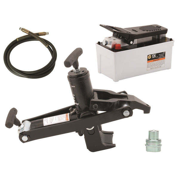 Omega Combination kit of a Bead Breaker, Air Treadle Pump, Hydraulic Hose, Hydraulic Coupler.